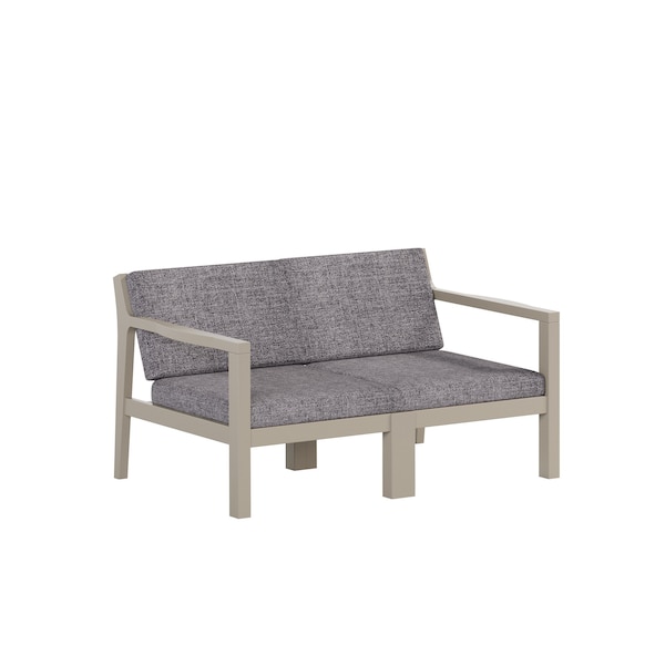 POLYBIRD BREEZE DEEP SEAT LOVESEAT FRAME COLOR WEATHERWOOD WITH SUNBRELLA CAST SLATE FABRIC. HIGH QUALITY HDPE POLY LUMBER, 316 MARINE GRADE STAINLESS HARDWARE, FADE AND ROT RESISTANT, MAINTENANCE FREE!! BIFMA M&E STANDARDS FOR COMMERCIAL AND RESIDENTIAL USE! 100% END OF LIFE RECYCLABLE FOR A SUSTAINABLE FUTURE! POLYBIRD BREEZE DEEP SEAT LOVESEAT , SEAT SIZE: 44in W x 23in D x 17in H; OVERALL SIZE : 44in W x 28in D x 30in H, FABRICS FOR THE CUSHIONS ARE: SUNBRELLA CAST SLATE