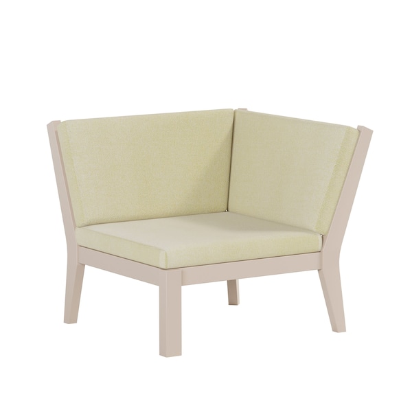 POLYBIRD BREEZE DEEP SEAT SECTIONAL PIECE CORNER CHAIR. FRAME COLOR SAND WITH SUNBRELLA CANVAS CANVAS FABRIC. HIGH QUALITY HDPE POLY LUMBER, 316 MARINE GRADE STAINLESS HARDWARE, FADE AND ROT RESISTANT, MAINTENANCE FREE!! BIFMA M&E STANDARDS FOR COMMERCIAL AND RESIDENTIAL USE! 100% END OF LIFE RECYCLABLE FOR A SUSTAINABLE FUTURE! POLYBIRD BREEZE DEEP SEAT SECTIONAL PIECE CORNER CHAIR, SEAT SIZE: 25in W x 27in D x 17in H; OVERALL SIZE : 34in W x 36in D x 30in H. FABRIC COLOR FOR THE CUSHIONS ARE: SUNBRELLA CANVAS CANVAS