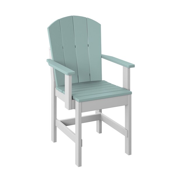 POLYBIRD FANBACK DINING CHAIR. COLOR SAGE TOP AND WHITE BASE. HIGH QUALITY HDPE POLY LUMBER, 316 MARINE GRADE STAINLESS HARDWARE, FADE AND ROT RESISTANT, MAINTENANCE FREE!! BIFMA M&E STANDARDS FOR COMMERCIAL AND RESIDENTIAL USE! 100% END OF LIFE RECYCLABLE FOR A SUSTAINABLE FUTURE! SEAT: 19in W x 17in D x 18in H; Overall size: 24in W x 22inD x 38in H