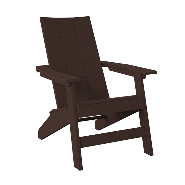 POLYBIRD MODERN ADIRONDACK. COLOR TUDOR BROWN. HIGH QUALITY HDPE POLY LUMBER, 316 MARINE GRADE STAINLESS HARDWARE, FADE AND ROT RESISTANT, MAINTENANCE FREE!! BIFMA M&E STANDARDS FOR COMMERCIAL AND RESIDENTIAL USE! 100% END OF LIFE RECYCLABLE FOR A SUSTAINABLE FUTURE! MODERN ADIRONDACK: SEAT SIZE 20in W x 19in D x 16in H; OVERALL: 28in W x 30in D x 36in H.