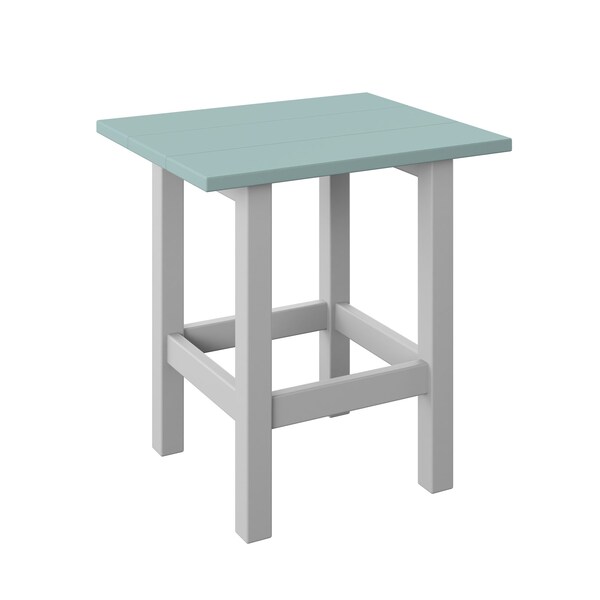 POLYBIRD MODERN END TABLE. COLOR SAGE TOP AND WHITE BASE. HIGH QUALITY HDPE POLY LUMBER, 316 MARINE GRADE STAINLESS HARDWARE, FADE AND ROT RESISTANT, MAINTENANCE FREE!! BIFMA M&E STANDARDS FOR COMMERCIAL AND RESIDENTIAL USE! 100% END OF LIFE RECYCLABLE FOR A SUSTAINABLE FUTURE! MODERN END TABLE: SIZE 16in W x 19in D x 20in H; OVERALL: 16in W x 19in D x 20in H.