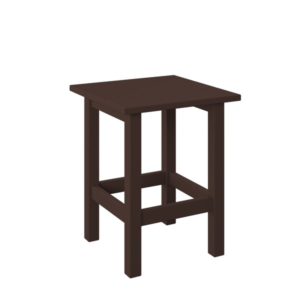 POLYBIRD MODERN END TABLE. COLOR TUDOR BROWN. HIGH QUALITY HDPE POLY LUMBER, 316 MARINE GRADE STAINLESS HARDWARE, FADE AND ROT RESISTANT, MAINTENANCE FREE!! BIFMA M&E STANDARDS FOR COMMERCIAL AND RESIDENTIAL USE! 100% END OF LIFE RECYCLABLE FOR A SUSTAINABLE FUTURE! MODERN END TABLE: SIZE 16in W x 19in D x 20in H; OVERALL: 16in W x 19in D x 20in H.
