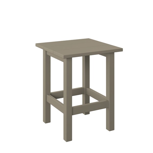 POLYBIRD MODERN END TABLE. COLOR WEATHERWOOD. HIGH QUALITY HDPE POLY LUMBER, 316 MARINE GRADE STAINLESS HARDWARE, FADE AND ROT RESISTANT, MAINTENANCE FREE!! BIFMA M&E STANDARDS FOR COMMERCIAL AND RESIDENTIAL USE! 100% END OF LIFE RECYCLABLE FOR A SUSTAINABLE FUTURE! MODERN END TABLE: SIZE 16in W x 19in D x 20in H; OVERALL: 16in W x 19in D x 20in H.