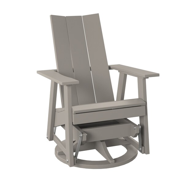 POLYBIRD MODERN SWIVEL GLIDER. COLOR SAND. HIGH QUALITY HDPE POLY LUMBER, 316 MARINE GRADE STAINLESS HARDWARE, FADE AND ROT RESISTANT, MAINTENANCE FREE!! BIFMA M&E STANDARDS FOR COMMERCIAL AND RESIDENTIAL USE! 100% END OF LIFE RECYCLABLE FOR A SUSTAINABLE FUTURE! MODERN SWIVEL GLIDER CHAIR: SEAT SIZE 21in W x 17in D x 16in H; OVERALL SIZE : 28in W x 32in D x 38in H