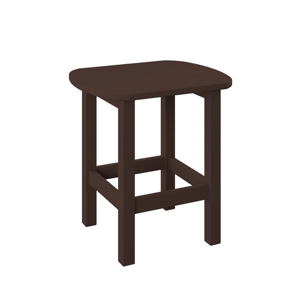 POLYBIRD OVAL END TABLE. COLOR TUDOR BROWN. HIGH QUALITY HDPE POLY LUMBER, 316 MARINE GRADE STAINLESS HARDWARE, FADE AND ROT RESISTANT, MAINTENANCE FREE!! BIFMA M&E STANDARDS FOR COMMERCIAL AND RESIDENTIAL USE! 100% END OF LIFE RECYCLABLE FOR A SUSTAINABLE FUTURE! OVAL END TABLE: SIZE 16in W x 19in D x 20in H;