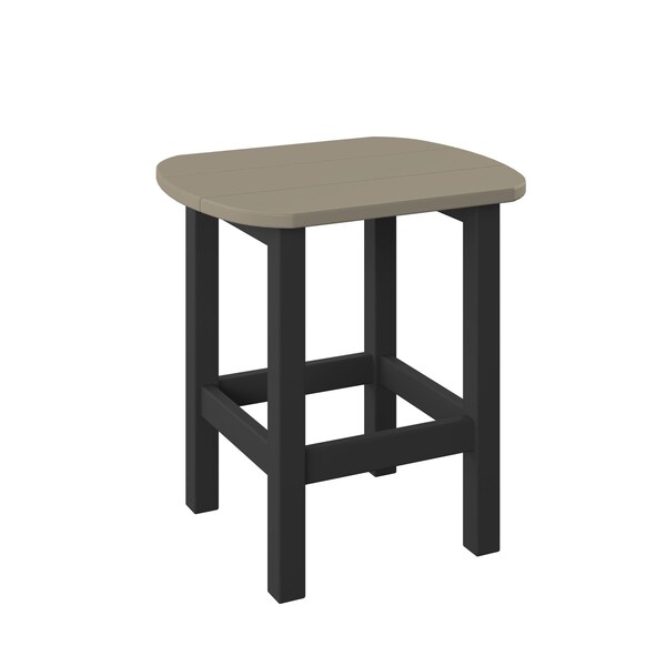 POLYBIRD OVAL END TABLE. COLOR WEATHERWOOD TOP AND BLACK BASE. HIGH QUALITY HDPE POLY LUMBER, 316 MARINE GRADE STAINLESS HARDWARE, FADE AND ROT RESISTANT, MAINTENANCE FREE!! BIFMA M&E STANDARDS FOR COMMERCIAL AND RESIDENTIAL USE! 100% END OF LIFE RECYCLABLE FOR A SUSTAINABLE FUTURE! OVAL END TABLE: SIZE 16in W x 19in D x 20in H;
