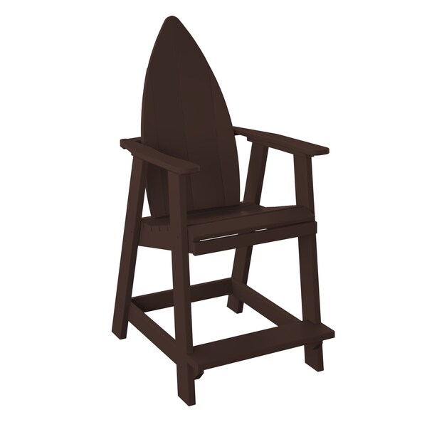 POLYBIRD SURFBOARD-NOSE BALCONY CHAIR. COLOR TUDOR BROWN. HIGH QUALITY HDPE POLY LUMBER, 316 MARINE GRADE STAINLESS HARDWARE, FADE AND ROT RESISTANT, MAINTENANCE FREE!! BIFMA M&E STANDARDS FOR COMMERCIAL AND RESIDENTIAL USE! 100% END OF LIFE RECYCLABLE FOR A SUSTAINABLE FUTURE! POLYBIRD SURFBOARD - NOSE BALCONY CHAIR: SEAT SIZE 20in W x 19in D x 24in H; OVERALL SIZE : 28in W x 35in D x 51in H
