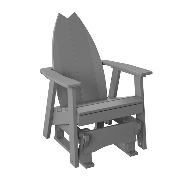 POLYBIRD SURFBOARD-TAIL 2' GLIDER. COLOR LIGHT GRAY. HIGH QUALITY HDPE POLY LUMBER, 316 MARINE GRADE STAINLESS HARDWARE, FADE AND ROT RESISTANT, MAINTENANCE FREE!! BIFMA M&E STANDARDS FOR COMMERCIAL AND RESIDENTIAL USE! 100% END OF LIFE RECYCLABLE FOR A SUSTAINABLE FUTURE! POLYBIRD SURFBOARD - TAIL 2' GLIDER CHAIR: SEAT SIZE 21in W x 18in D x 17in H; OVERALL SIZE : 28in W x 28in D x 37in H