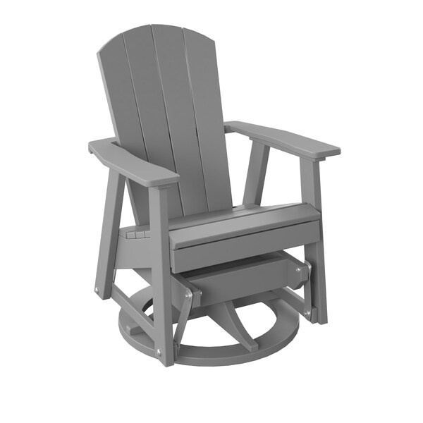 POLYBIRD SWIVEL GLIDER. COLOR LIGHT GRAY. HIGH QUALITY HDPE POLY LUMBER, 316 MARINE GRADE STAINLESS HARDWARE, FADE AND ROT RESISTANT, MAINTENANCE FREE!! BIFMA M&E STANDARDS FOR COMMERCIAL AND RESIDENTIAL USE! 100% END OF LIFE RECYCLABLE FOR A SUSTAINABLE FUTURE! SWIVEL GLIDER : 21in W x 18in D x 18in H; Overall size: 28in W x 32inD x 38in H ,