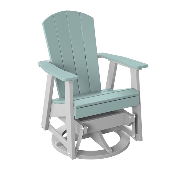 POLYBIRD SWIVEL GLIDER. COLOR SAGE TOP AND WHITE BASE. HIGH QUALITY HDPE POLY LUMBER, 316 MARINE GRADE STAINLESS HARDWARE, FADE AND ROT RESISTANT, MAINTENANCE FREE!! BIFMA M&E STANDARDS FOR COMMERCIAL AND RESIDENTIAL USE! 100% END OF LIFE RECYCLABLE FOR A SUSTAINABLE FUTURE! SWIVEL GLIDER : 21in W x 18in D x 18in H; Overall size: 28in W x 32inD x 38in H ,