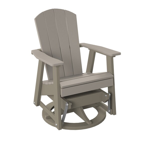 POLYBIRD SWIVEL GLIDER. COLOR SAND TOP AND WEATHERWOOD BASE. HIGH QUALITY HDPE POLY LUMBER, 316 MARINE GRADE STAINLESS HARDWARE, FADE AND ROT RESISTANT, MAINTENANCE FREE!! BIFMA M&E STANDARDS FOR COMMERCIAL AND RESIDENTIAL USE! 100% END OF LIFE RECYCLABLE FOR A SUSTAINABLE FUTURE! SWIVEL GLIDER : 21in W x 18in D x 18in H; Overall size: 28in W x 32inD x 38in H ,