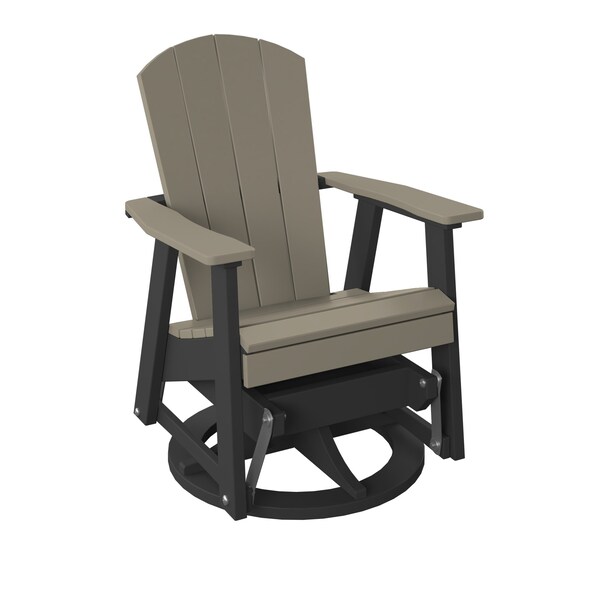 POLYBIRD SWIVEL GLIDER. COLOR WEATHERWOOD TOP AND BLACK BASE. HIGH QUALITY HDPE POLY LUMBER, 316 MARINE GRADE STAINLESS HARDWARE, FADE AND ROT RESISTANT, MAINTENANCE FREE!! BIFMA M&E STANDARDS FOR COMMERCIAL AND RESIDENTIAL USE! 100% END OF LIFE RECYCLABLE FOR A SUSTAINABLE FUTURE! SWIVEL GLIDER : 21in W x 18in D x 18in H; Overall size: 28in W x 32inD x 38in H ,