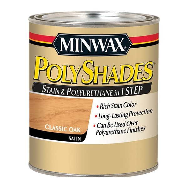 Minwax PolyShades combines stain and polyurethane in one simple step. Each coat provides rich color and lasting protection while enhancing the wood grain. This product will reduce finishing time compared with staining with one product and protecting with another. PolyShades stain and polyurethane also allows you to easily change the color of your currently stained or varnished wood without stripping. Over old varnish you can change the color without removing the old finish or hiding the grain. **This product may be subject to VOC shipping regulations.**