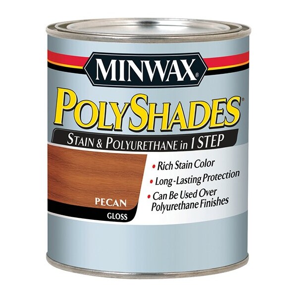 Minwax PolyShades combines stain and polyurethane in one simple step. Each coat provides rich color and lasting protection while enhancing the wood grain. This product will reduce finishing time compared with staining with one product and protecting with another. PolyShades stain and polyurethane also allows you to easily change the color of your currently stained or varnished wood without stripping. Over old varnish you can change the color without removing the old finish or hiding the grain. **This product may be subject to VOC shipping regulations.**