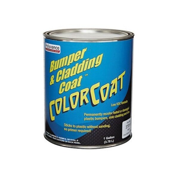 Polyvances Bumper & Cladding Color Coat is an advanced,low-VOC, solvent-based coating designed to permanentlyrecolor molded-in-color textured TPO and polypropyleneplastic bumpers, side cladding, and trim found on many oftodays cars, trucks, and SUVs. Bumper & Cladding Coatrequires no adhesion promoter or sanding to apply; simplyclean and spray! Bumper & Cladding Color Coat is notrecommended over other substrates such as rawpolyurethane PUR or OEM primed bumpers withoutsanding.Bumper & Cladding Color Coat permanently recolors faded,marred, and stained plastic. Its not a silicone-based productthat puts a quickly-fading shine on the plastic. Its anadvanced solvent-based coating that sticks to the surfacelike glue, permanently recoloring it. Permanently recolor faded, scuffed, marred, discolored, or damaged plastic bumpers, side cladding, and trim.|Sticks to TPO and Polypropylene PP plastic without sanding. No adhesion promoter or primer required. Just clean the bumper and shoot!|Sticks lik