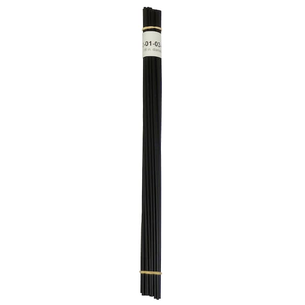 Polypropylene is used in many of the bumpers on import cars. The plastic is usually black, and sometimes gray. Polypropylene has a waxy feel to it and it smears and gets hairy when sanded at high speed. If you have determined that the plastic you are going to weld is polypropylene, this is the plastic welding rod you need. Use this plastic welding rod with either Polyvance's airless plastic welder or a hot air plastic welder. Black color has been added to make more invisible repairs to bumpers and other black polypropylene. This package contains 30 ft. 9.1 m of polypropylene plastic welding rods. Each rod measures 12 inches 30 cm long and is 1/8th inch 3 mm in diameter. Works with airless, hot-air, and nitrogen plastic welders.|Rod diameter fits perfectly into the standard welding tip of Polyvance's Mini-Weld Airless Plastic Welder.