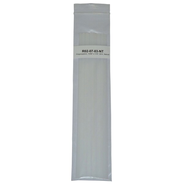 These narrow strips of polypropylene plastic welding rod are perfect for repairing or replacing those tiny slot tabs that you find on many bumper covers. No pigment has been added so the color is the natural color of polypropylene. Each rod is 13/64in 5 mm wide by 1/16in 1.6 mm thick and 12in 30 cm long and there are 30 rods in a pack. Works with airless, hot-air, and nitrogen plastic welders.|Perfect size for repairing slot tabs on bumper covers.
