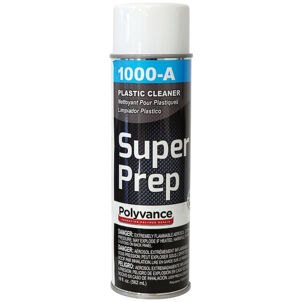 Before doing any sort of plastic repair, use Super Prep Plastic Cleaner to maximize the durability of your repair. Super Prep Plastic Cleaner removes mold release agents, wax, grease, silicone, tar, undercoating, dressings, sticker residue, and other contaminants from painted or unpainted plastic or metal surfaces. It's simple to use; just spray it on and wipe off with a clean, lint-free cloth. This gallon can of Super Prep contains 19 fl. oz. 562 ml of plastic cleaner. Mild solvents won't attack most plastics.|Simple to use just spray it on and wipe it off.|Maximizes durability of repair by removing contaminants.