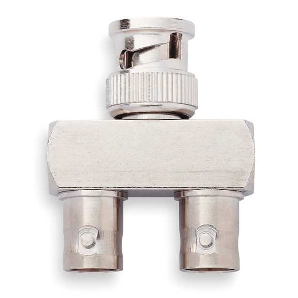 BNC Adapter, Female to Dual Parallel Male, Voltage Rating CAT I 500V, Body Material Tarnish Resistant Nickel Plated Brass, Contact Material Male Gold Plated Brass/Female Gold Plated Beryllium Copper, Frequency Range (Hz) to 4 G, Impedance (Ohms) 50 ohm, Insulation Type Polybutylene Terephalate, Operating Temp. -85 to 329 Degrees F,-65 to 165 Degrees C