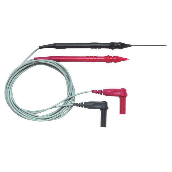 Retractable Needle Tip Test Probe, CAT II 600V, Right-Angle DMM Plug, 4 ft., Silicone, Red, Black