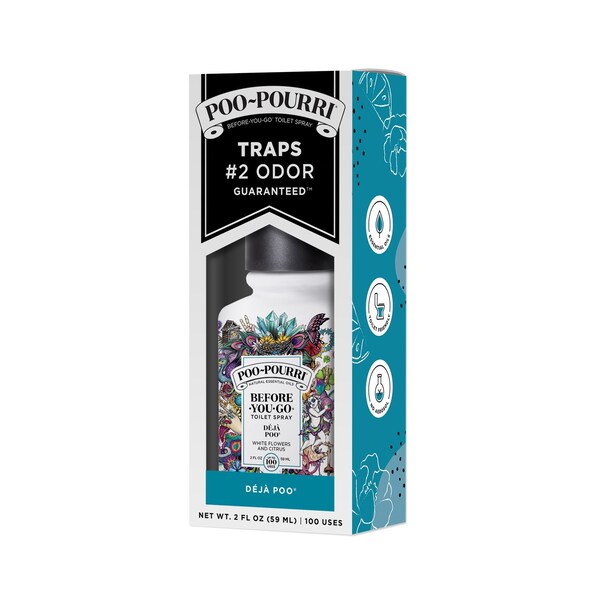Boost your bathroom karma by leaving the toilet smelling better than you found it. Poo~Pourri D?j? Poo is a pure blend of white flowers and citrus essential oils that eliminates bathroom odor before it begins by creating a barrier on the waterÆs surface. It'll set you free! Who says you canÆt achieve whirled peace? 2 oz Covers up to 100 uses.