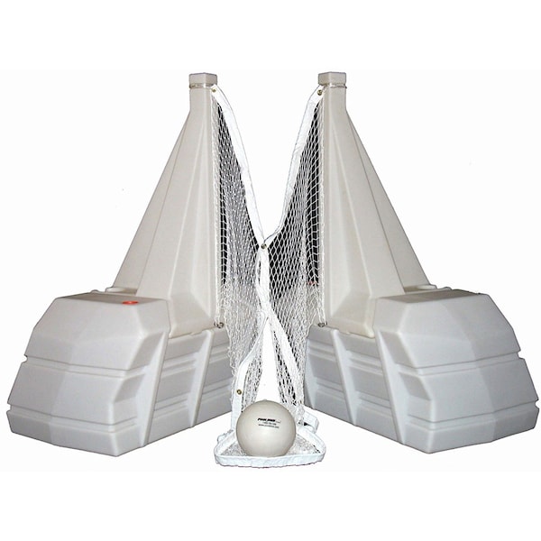 The Super Water Volleyball deluxe game system is the essential volleyball game for municipal pools, community centers, YMCA's, health clubs, luxury resorts, cruise ships and other commercial and residential locations that demand continuous action, non-stop performance, and no-nonsense safety features. Dual, high capacity, rugged plastic bases each hold up to 50 gallons of water or sand to create stable platforms that virtually anchor the net to the deck. The Super Water Volleyball's heavy-duty, nylon net stretches tightly between the bases and adjusts from 12 to 20 feet. Includes two official size, waterproof vinyl volleyballs, hardware and easy-to-follow assembly instructions.