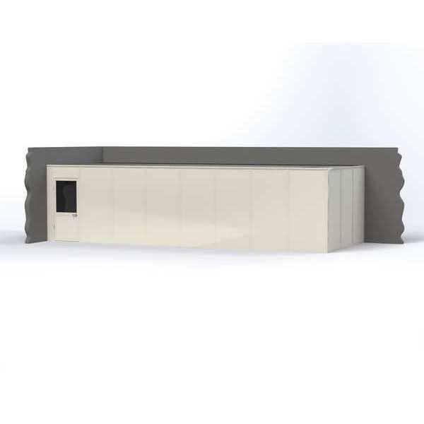 Modular In-Plant Office, 2-Wall, Unassembled, Depth 12 ft, Width 32 ft, Height 8 ft, 3 Lights, 4 Outlets, Class A Fire Rating, R-12 Insulation, Color White, Panel Material Vinyl Covered Drywall Int. and Steel Covered Drywall Ext., Frame Color White, Aluminum, Sound Transmission Coefficient STC 25