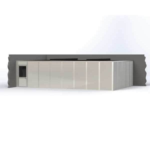 Modular In-Plant Office, 2-Wall, Unassembled, Depth 20 ft, Width 32 ft, Height 8 ft, 5 Lights, 7 Outlets, Class A Fire Rating, R-9 Insulation, Color Gray, Panel Material Vinyl Covered Drywall Int. and Ext., Frame Color Gray, Aluminum, Sound Transmission Coefficient STC 33