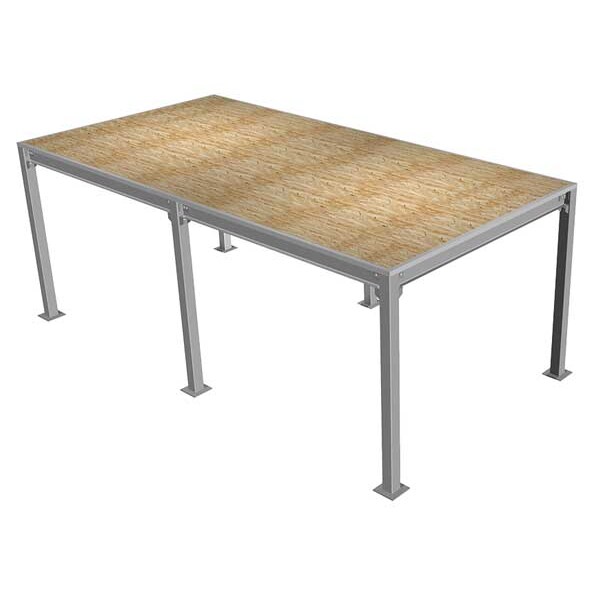 Platform Mezzanine, Platform Area 480 sq ft, Ground Clearance Height 95 7/8 in, Load Capacity 125 lb/sq ft, Overall Height 9 ft, Overall Width 20 ft, Number of Girders 4, Number of Purlins 4, Assembled Unassembled, Frame Material Steel, Resistance Properties Scratch Resistant, Stain Resistant, Polyurethane Acrylic Enamel, Method of Construction Bolted, Support Leg Color Gray, Support Leg Depth 6 in, Support Leg Height 12 in, Support Leg Width 6 in, Deck Color Gray, Deck Thickness 3/4 in