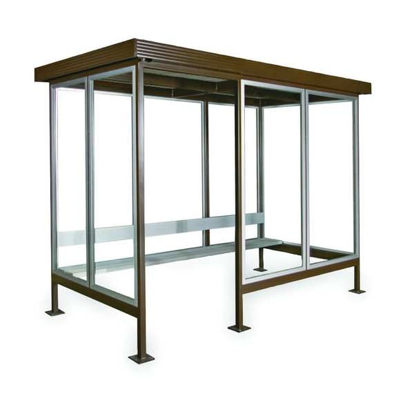 Smoking Shelter, Seating Height 93.5 in, Seating Depth 60 in, Seating Width 8 ft, Nominal Exterior Depth 96 in, Nominal Exterior Height 94 in, Nominal Exterior Length 60 in, Roof Design Straight, Interior Depth 56 in, Includes Exhaust Fan Yes, Two - Part Polyurethane, Interior Height 86 in, Interior Length 86 in, Frame Material Steel, Includes Lighting Yes, Assembled Assembled, Bicycle Capacity Not Applicable, Brown, Opening Width 40 in, Number of Sides 4, Number of Panels 4