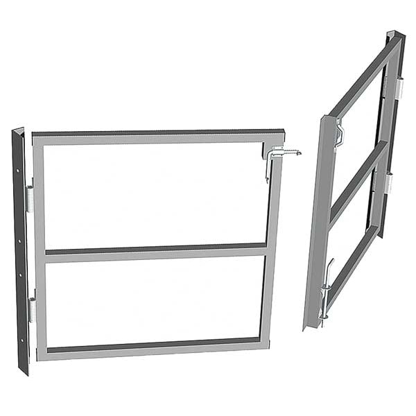Swing Gate, Manual, Gate Color Gray, Gate Material Steel, Gate Height 42 in, Gate Finish Acrylic Enamel, Post Color Gray, Overall Height 42 in, Overall Width 76 in, Assembled Unassembled, Lockable Yes, Includes (2) Latches, (2) Support Posts, Safety Controls Stop, Includes Bollards No, -