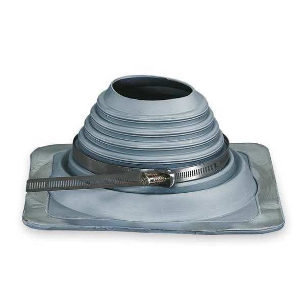 One Piece Square Flexible Flanged, Complete with Integral Gray EPDM Cap which Bends to Conform to Contours of Roof Irregularities