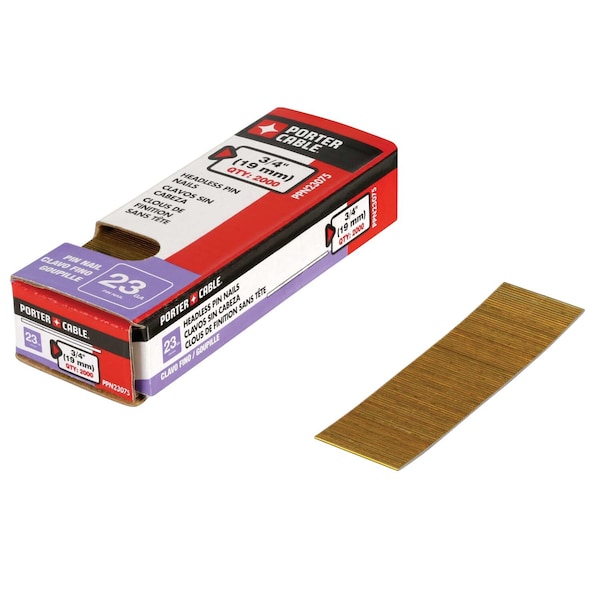 Chisel Pins,0.75 In. L,Galvanized,PK2000, Overall Length 3/4 in, Shank Diameter 0.75 in, Gauge 23 ga, Product Type Pin Nails, Material Steel, Finish Galvanized, Penny Size Not Applicable, Head Type Headless, Head Diameter 3/4 in, Shank Type Smooth, Point Type Chisel, Collation Type Glue, Collation Configuration Strip, Collation Angle 0 Degrees , Collation Quantity 2,000, For Use With Mfr. No. PIN100, Manufacturer Location Globally Sourced, Package Quantity 2000