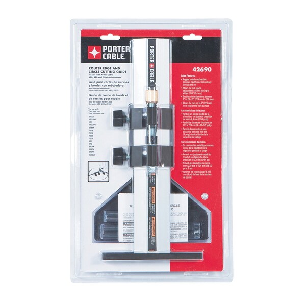 THE PORTER-CABLE 42690 IS AN EASY TO USE AND ACCURATE EDGE GUIDE FOR PORTER-CABLE ROUTERS, DESIGNED FOR MODELS 100, 690, 691, 693, 891, 892 AND 893. THIS DURABLE ROUTER ACCESSORY IS BUILT WITH AN ANODIZED, EXTRUDED ALUMINIUM BODY FOR EXTRA STRENGTH AND DUAL SLIDING, LOCKABLE MOUNTS TO ALLOW FOR EASY OPERATION. MOUNTING HARDWARE COMES INCLUDED. THE PORTER-CABLE 42690 EDGE GUIDE IS USED TO GUIDE THE ROUTER VIA THE EDGE OF THE WORKPIECE. THIS PRODUCT IS COMPATIBLE WITH ALL 690 AND 890 SERIES ROUTERS.