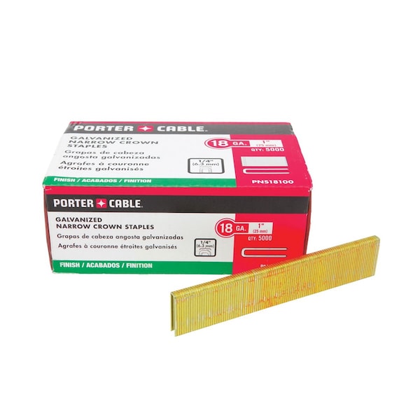 PORTER-CABLE PNS18100 NARROW CROWN STAPLES, 1 IN L LEG, CHISEL POINT, GRADE 2 STEEL, .25 W CROWN