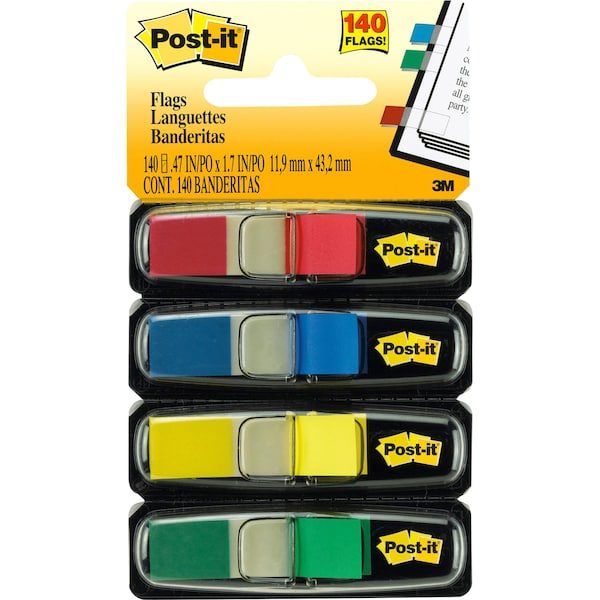 Post-it Flags make it simple to mark your place, flag or highlight important information. Use them to draw attention to critical items, index, file or color-code. Eye-catching, colorful flags are easy to spot and have space to write. Removable adhesive allows the attention-getting 1/2" flags to stick securely, reposition and remove cleanly. The handy detachable cartridges can be used as a stand-alone dispenser or placed in a desktop dispenser/organizer with a built-in Post-it Flags dispenser.