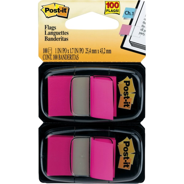 Post-it Flags in an easy-to-spot bright pink color make it simple to mark your place, flag or highlight important information. Use them to draw attention to critical items, index, file or color-code. Eye-catching, colorful flags are easy to spot and have space to write. Removable adhesive allows the attention-getting 1" flags to stick securely, reposition and remove cleanly. The handy detachable cartridges can be used as a stand-alone dispenser or placed in a desktop dispenser/organizer with a built-in Post-it Flags dispenser.