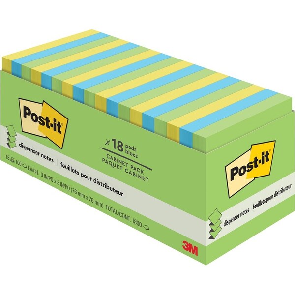 Stock up on Post-it Pop-up Notes in this handy cabinet pack. Easy-to-open cabinet pack contains 18 individually wrapped pads of pop-up notes in assorted ultra colors and provides a convenient way to keep extra pads organized. Pop-up Notes offer the convenience of grabbing just one note, with just one hand. Repositionable adhesive won't mark paper and other surfaces. The accordion-style notes pop up one at a time from a specially designed Pop-up dispenser (sold separately), keeping the notes at your fingertips. The paper in Post-it Notes is sourced from certified, renewable and responsibly managed forests. 100 sheets per pad.