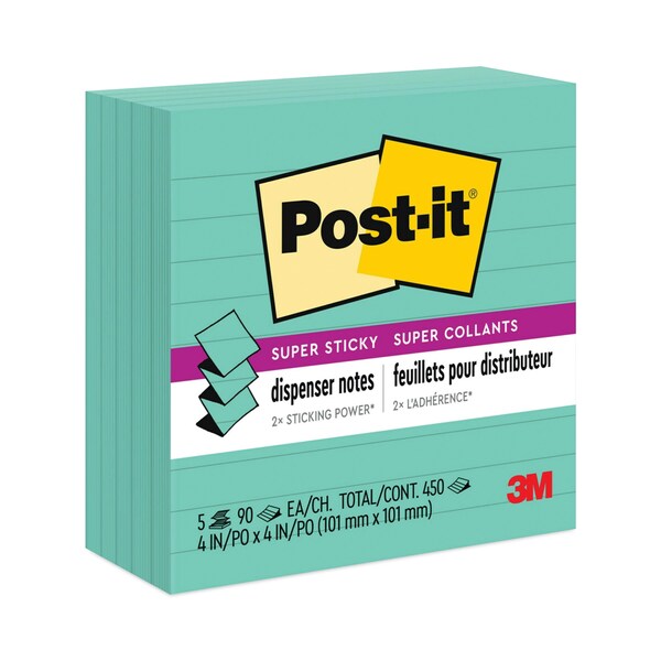 Post-it® Pop-up Notes Super Sticky Pop-up Notes Refill, Lined, 4 x 4, Aqua Wave, 90-Sheet, 5/Pack