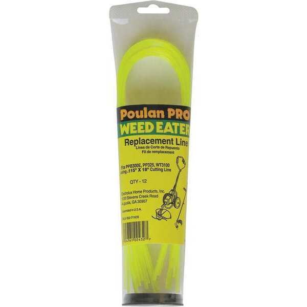 Pre-Cut String Trimmer Line, Diameter 0.115 In., Length 18 in, For Use With 19YW78 Trimmer, Package Quantity 12