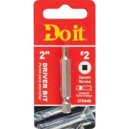 Square 2-Pc Power Bit, 1/4" Hex Drv,