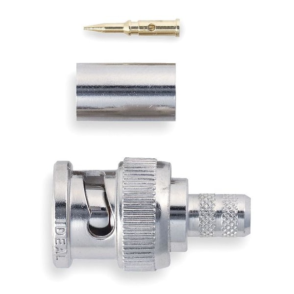 Coaxial Connector, Gender Male, Product Type Connector, Color Silver, Installation Method Crimp-On (3 Piece), Compatible Coaxial Cable Type RG-59, Maximum Frequency 3 GHz, Maximum Impedance 75 ohm, Connector Type BNC, Finish Nickel-Plated, Compatible Cable Fire Rating Not Applicable, Features Not Applicable, Includes Not Applicable, Manufacturers Warranty Length 1 yr, Material Brass, Number of Connectors Included Not Applicable, Resistance Properties Not Applicable, Standards Not Applicable