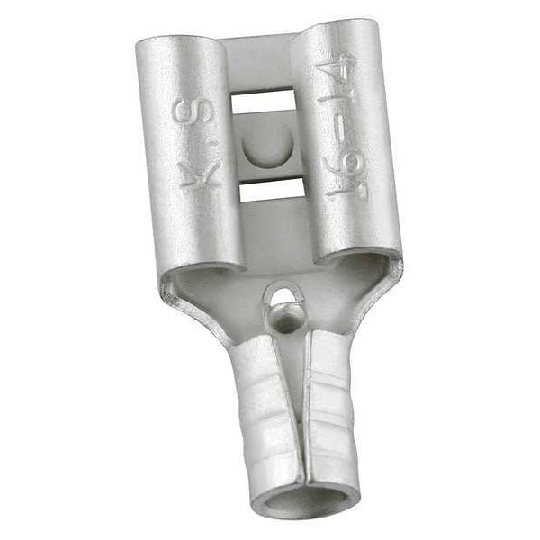 Female Disconnect, Contact Finish Tin, Contact Material Brass, Disconnect Style Tab, Insulation Color Bare, Insulation Coverage None, Insulation Material None, Maximum Operating Temperature 221 Degrees F, Minimum Wire Size 12 AWG, Maximum Wire Size 10 AWG, Maximum Voltage 600 V, Tab Thickness 0.032 in, Tab Width 0.25 in, Terminal Type Socket, Termination Style Crimp, RoHS Compliant Yes, Seam Style Butted, Standards UL/cUL Listed, Barrel Inside Diameter 0.134 in, Barrel Outside Diameter 0.177 in