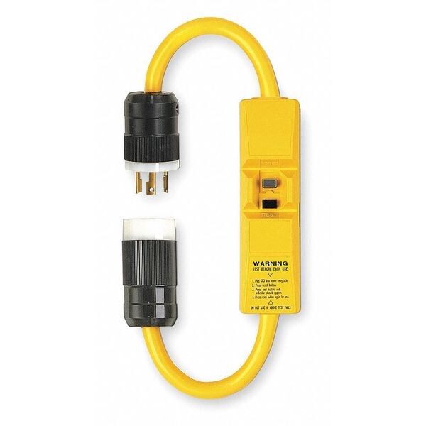 Line Cord GFCI, Cord Length 2.0 ft, Color Yellow, Max. Amps 30.0, Plug Configuration NEMA L5-30P, Receptacle Configuration NEMA L5-30R, Enclosure Rating Rainproof, Number of Outlets 1, Trade Designation SJTW, Voltage 120V AC, Hz 50/60, Number of Conductors 3