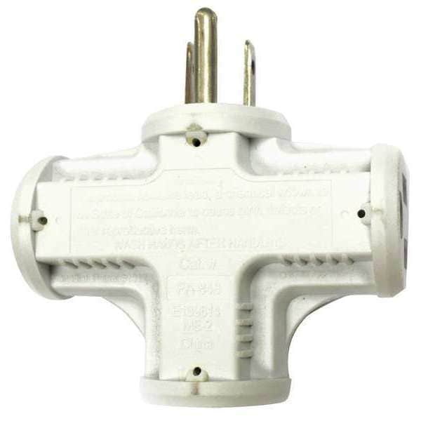 Adapter, Blade End Current Rating 15 A, Blade End Voltage Rating 125V AC, Housing Color White, Maximum Surge Current Not Applicable, Maximum Surge Energy Not Applicable, NEMA Plug Configuration 5-15P, NEMA Receptacle Configuration 5-15R, Number of Outlets 3, Slot End Current Rating 15 A, Slot End Voltage Rating 125V AC, Wattage 1,875 W, Adapter Type Multi-Outlet Tap, Blade End Connection Type Straight Blade, Blade End Number of Wires 3, GFCI No, Grounding Grounded, Number of Poles 2