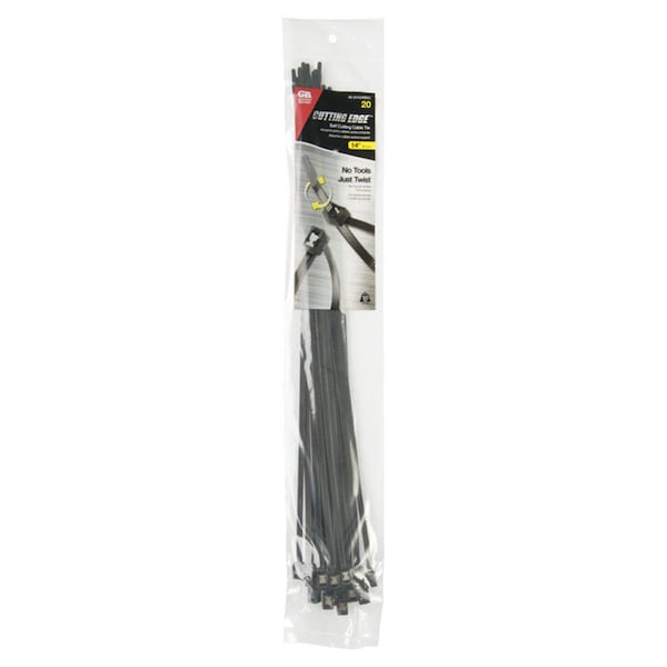Cable Tie, 14 in L, Black, Nylon, 20 PK