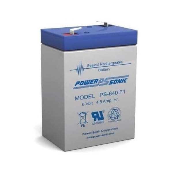 The PS-640F1 is part of the PS series of sealed lead acid batteries often referred to as VRLA which have been specifically designed for general purpose and standby applications. The 6V 4Ah battery with F1 terminals offers excellent performance in a wide range of applications including security and fire systems, medical devices, emergency lighting, and uninterruptable power supply UPS applications. Features Absorbent Glass Mat AGM technology for superior performance Valve regulated, maintenance free spill proof construction Power/volume ratio yielding excellent energy density Rugged vibration and impact resistant ABS case and cover Gas recombination technology 5-year design life