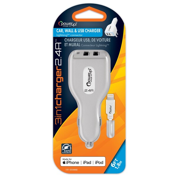 3-Way Charger 2.4a - MFI Apple 8-pin