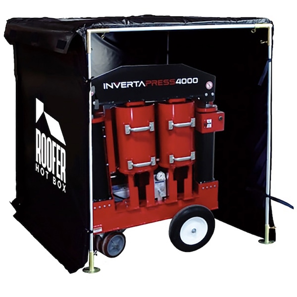HB88ROOF: 120 Volt - 1440 Watt - 12 Amps. The Powerblanket HB88ROOF Roofers Hot Box heater comes standard with an internal preset fixed thermostat which maintains an internal maximum temperature as high as 120 F. The HB88ROOF is fully insulated so it retains heat in extreme weather conditions. Save time and money by protecting your roofing shingles, adhesives, equipment, and materials from freezing without the risk of overheating. Heats pallets of shingles or roofing materials all at once. Works great for heating pallets of bulk material with heated dimensions of 48-inL X 48-inW x 66-inH. Whether you need a means for protecting temperature-sensitive materials in storage, or you need a heating solution for onsite temperature maintenance, the Powerblanket Roofers Hot Box is the answer for you. . Go ahead and put your compressor, adhesives, shingles and all other roofing equipment inside, it has the room for it and this Roofers Hot Box will keep them nice and toasty. We redesigned our HB64ROOF smaller Roofer Hot Box model and made it taller to specifically fit the height of larger roofing equipment like the InvertaPress 4000 adhesive and coatings two part viscosity control roofing equipment. This versatile heating solution accommodates remote-location use, job site heating, the transporting of temperature sensitive material, and much more. This Powerblanket product is ETL certified to UL/CSA/CE safety standards. Powerblanket has changed the conventional method of transferring heat to temperature-sensitive materials. The revolutionary design of Powerblanket Hot Boxes provides heat to all materials stored inside. Powerblanket products provide a maintenance-free heating solution, which eliminates the headache of maintaining critical temperatures. If stored properly; chemicals, industrial products, and temperature-sensitive materials will last longer, be easier to use and be more effective. In turn, this saves time, hassle, and money. Powerblanket HB88ROOF Bulk Material Warmer - Roofers Hot Box Heater. Maintains an internal temperature as high as of 120 F / 43 C ± 5 F / 3 C. Provides an insulated full-wrap design. Delivers uniform heat to temperature sensitive materials & products. Offers quick and easy assembly for portability and storage. Localize heat and save money by not heating a warehouse or building. Preserve expensive materials without scorching or burning. Prevent waste by maintaining consistent temperatures. Includes an internal fixed thermostat for