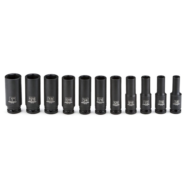 11Pc 1/2" Drive SAE Impact Deep Socket Set